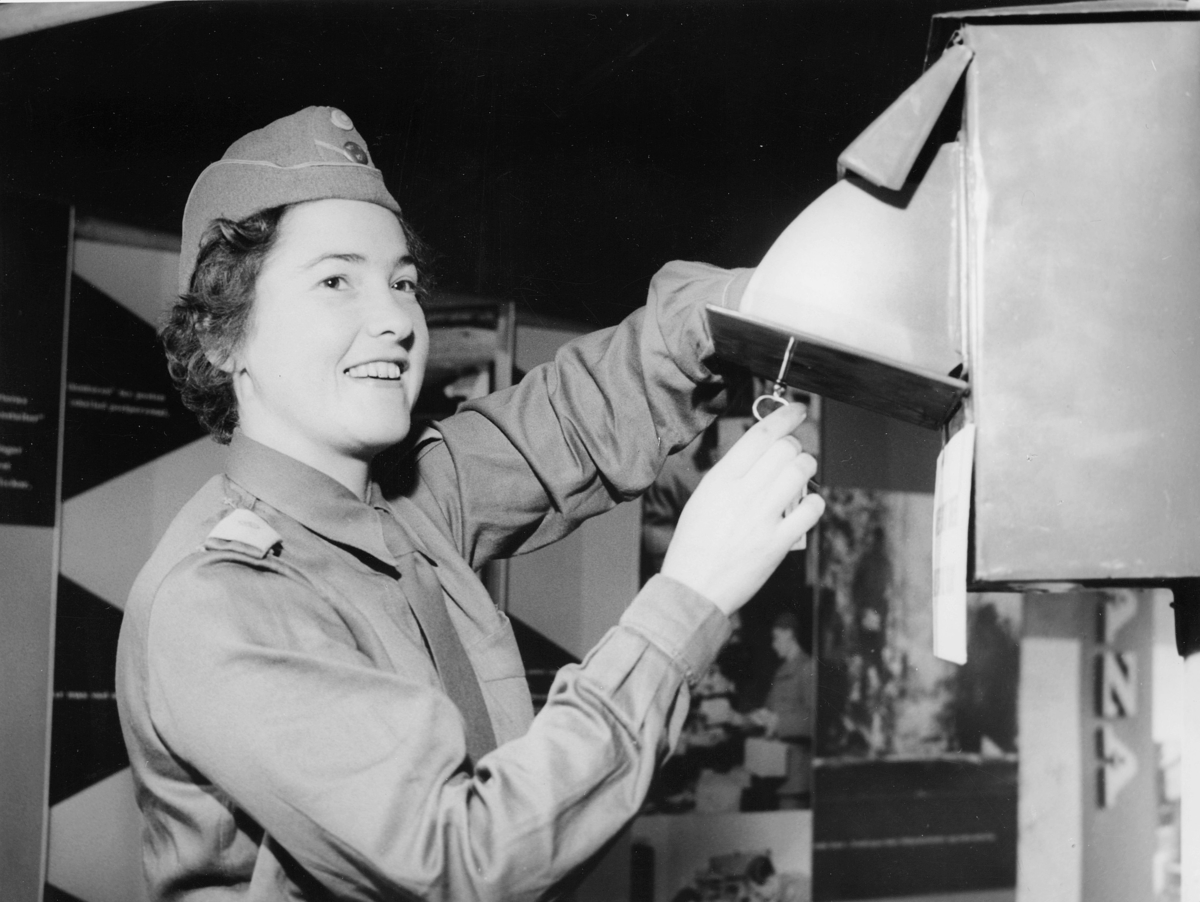 Titel: Fältpostsergeant Marianne Woldmar tömmer expeditionens brevlåda.