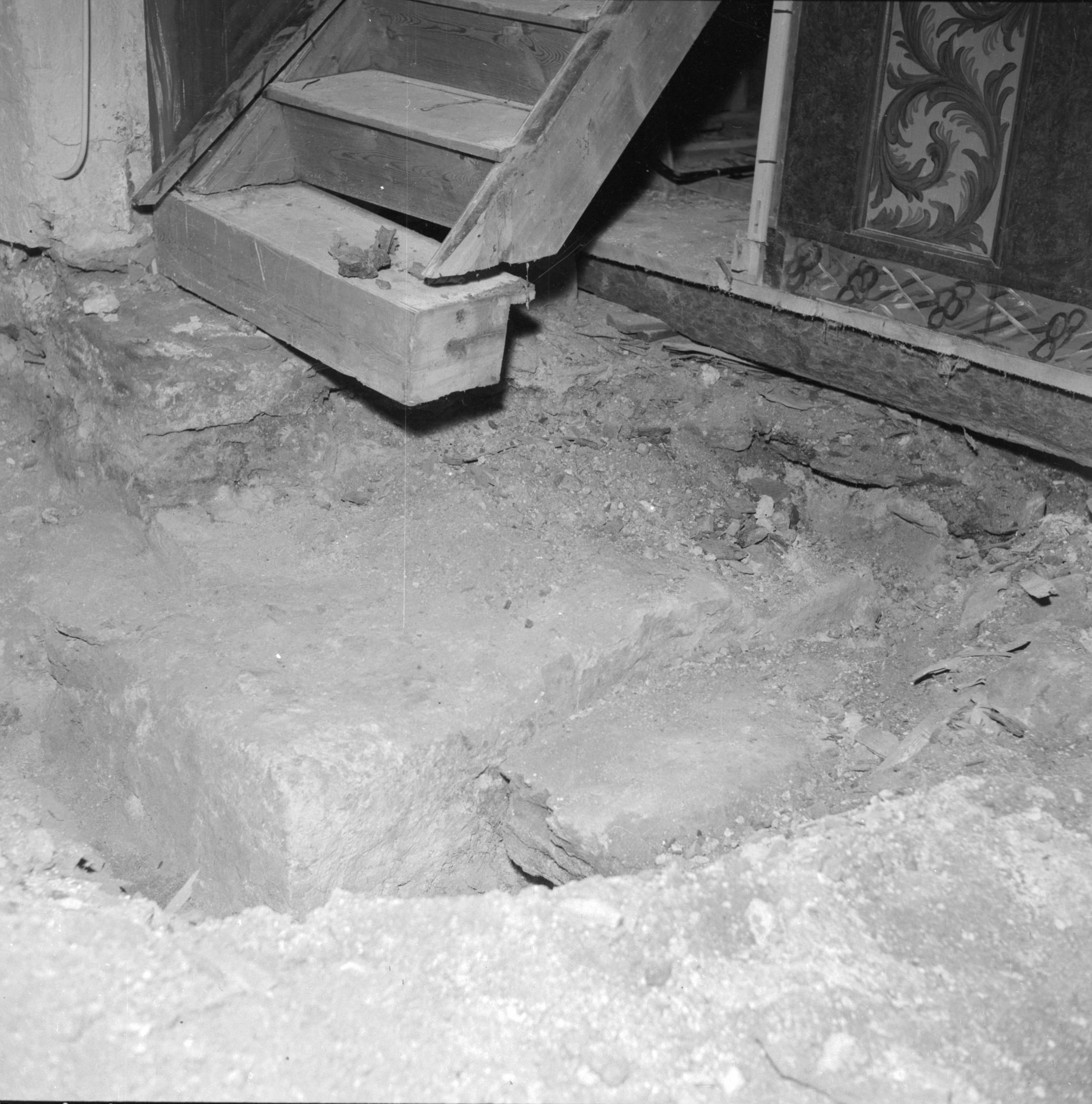 Grund till äldre triumfbågen södra sidan.