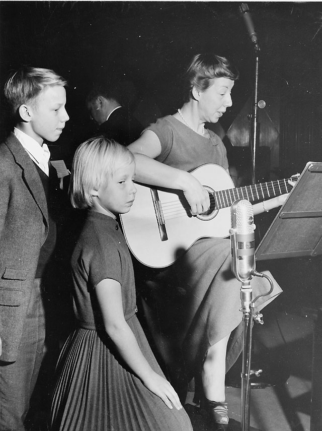 Margareta Kjellberg och hennes båda barn Göran och Elisabeth sjunger.