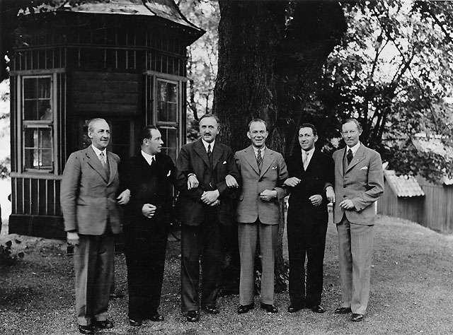 Stockholm, juli 1936. "Kuglepostens besättning" i Stockholm efter fullbordad färd.