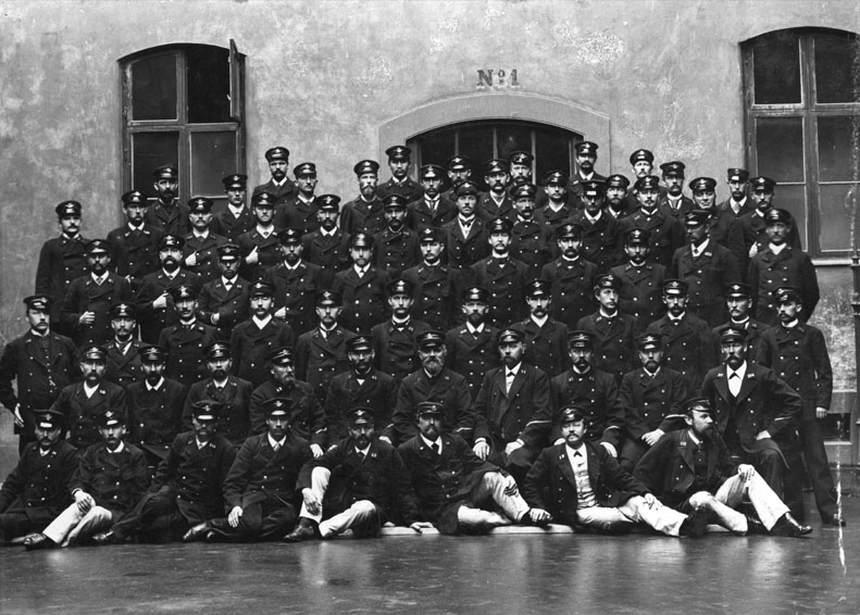 Titel: Brevlådtömmare och brevbärare vid Centralpostkontoret (Rödbodtorget) 1903.