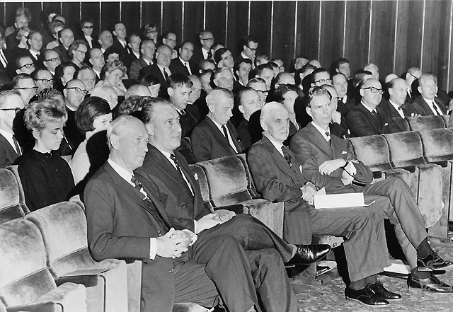 Under docent Bertil Moldes anförande lyssnar fr.v. i första raden: