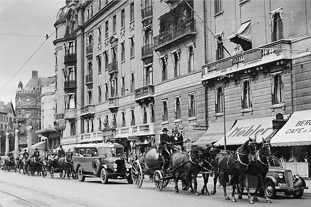 Titel: På Strandvägen. I fonden skymtar t.h. Kungliga Dramatiska Teatern.