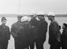åskådareplatsen vid ångbåtsbryggan stod några av förbindelse med sina