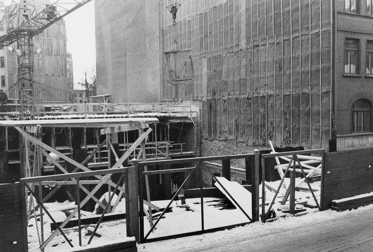 Bottenvåningen i huset Rådmansgatan 65 under byggnad. I fonden