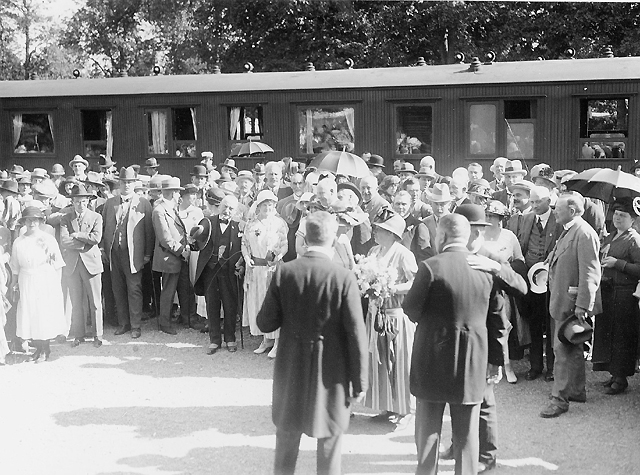 Titel: Utflykt till Gripsholm den 16 juli. Här ankommer tåget till Mariefred.