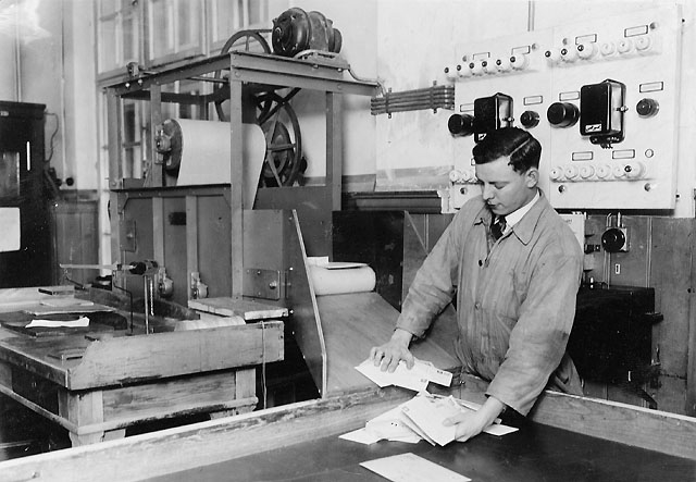Brevlådtömningen sker, på löpande band, inne på postkontoret.