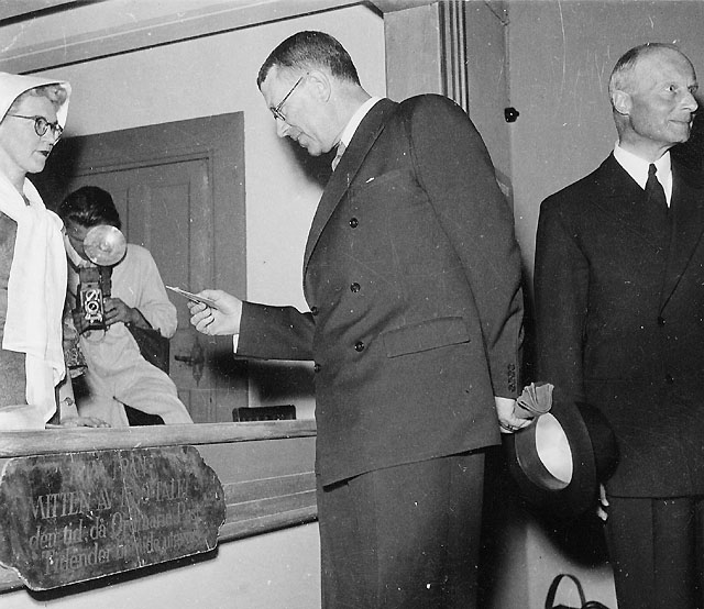 Titel: H.K.H. Kronprins Gustav Adolf vid postkassan på utställningen.