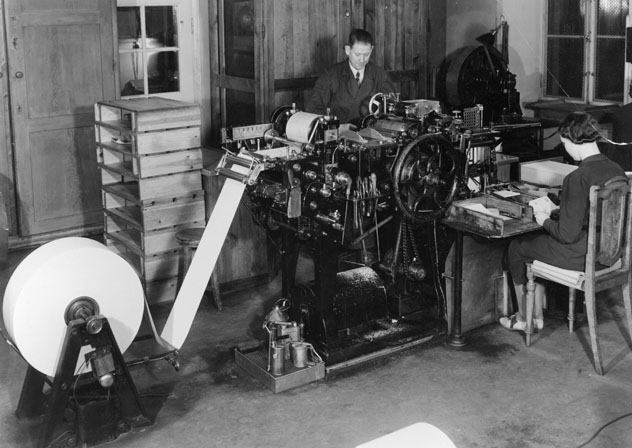 Kortbrevspress konstruerad av verkmästare E.V. Nyberg. Trycker,