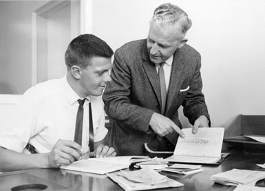 diskuterar här en detalj med kontrollör Stig Borg, postkontoret Visby