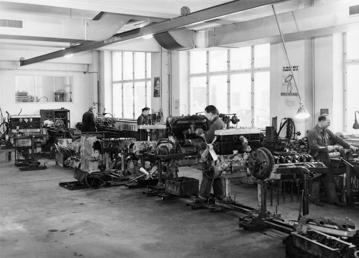 Titel: Postverkets Industrier, Ranhammarsvägen 16, Ulvsunda. 1947. Bilverkstaden.