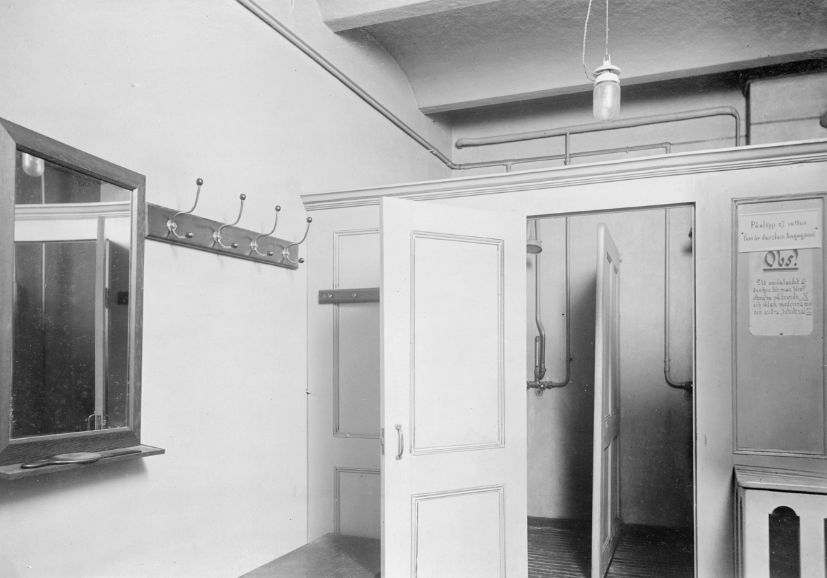 Posthuset Vasagatan, Stockholm 1903. Duschrum.