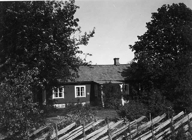Titel: Exteriör från väster. Till vänster jättelika päronträd.