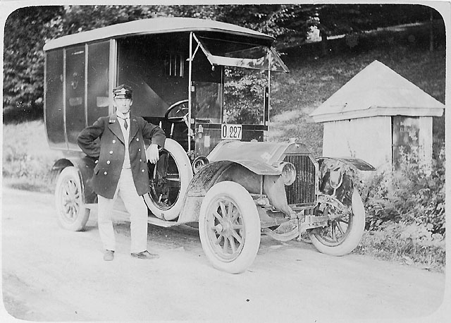 Titel: Postvaktmästare G.J. Karlsson utförde transporter vid Jonsereds-raset år 1913.