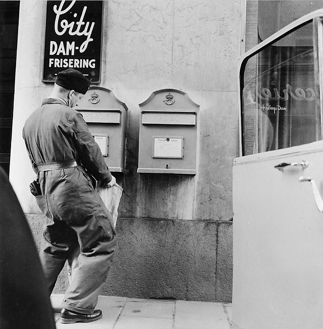 Chaufför Gustav Jarneving ute på dagens första brevlådtömningstur.