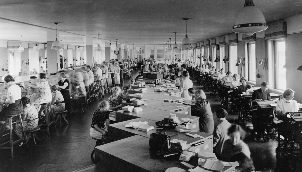 Titel: Den största av salarna. T.h. fönster åt Klara Norra Kyrkogata och t.v. åt gården.