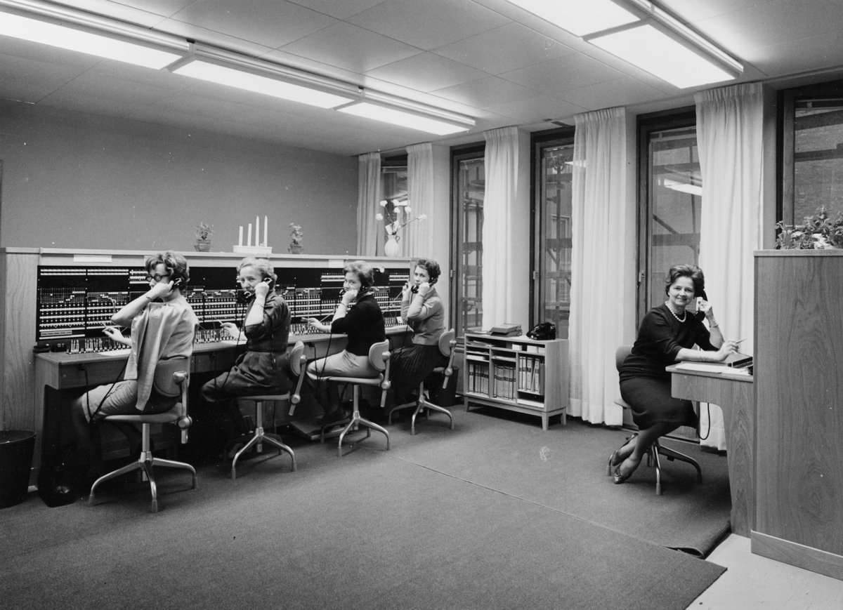 Postbankens telefonväxel i våningen 3 trappor. Fönster åt gården.