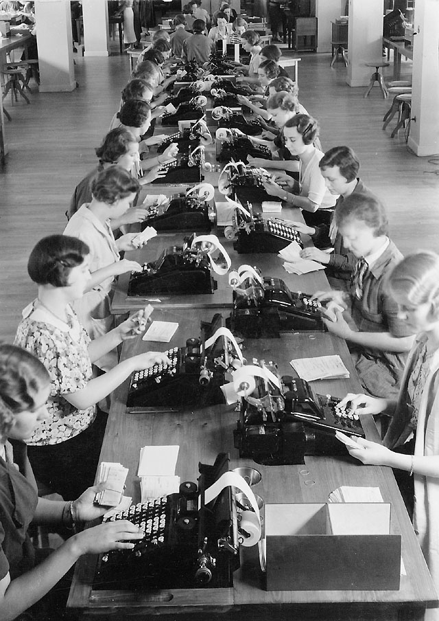 Titel: Postgirokontorets bokföringsavdelning på 3 trappor. Kontoslagning.