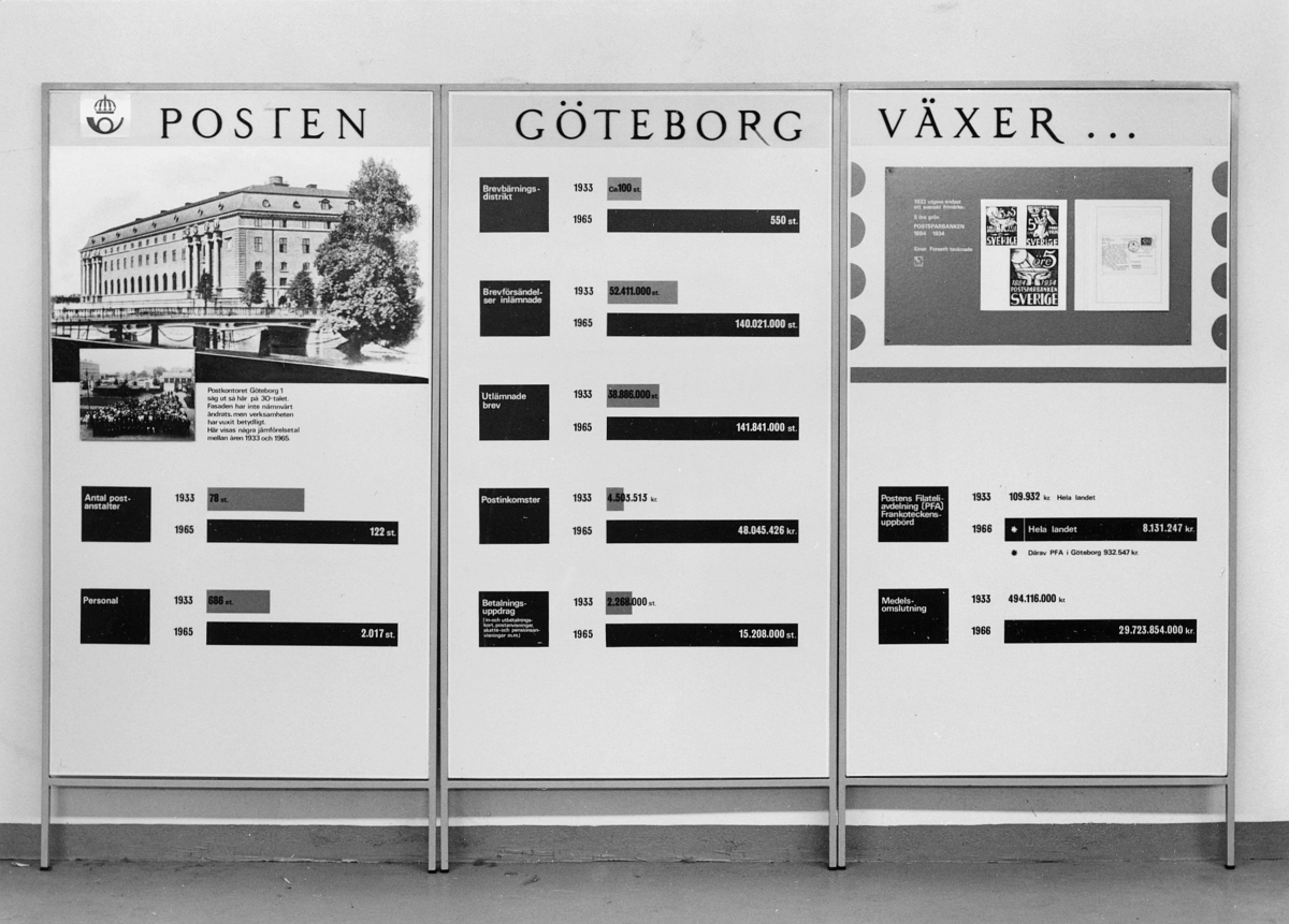 Utställningsskärmar ilustrerande den postala utvecklingen i