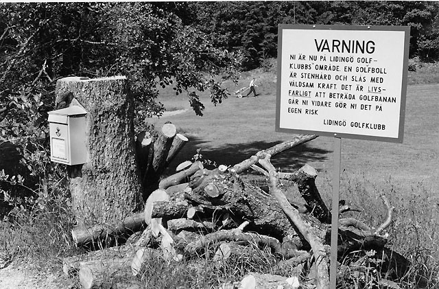 Brevlåda, intill Lidingö golfbana, vid Harrvägen - Rödstuguvägen - Kyttingevägen.