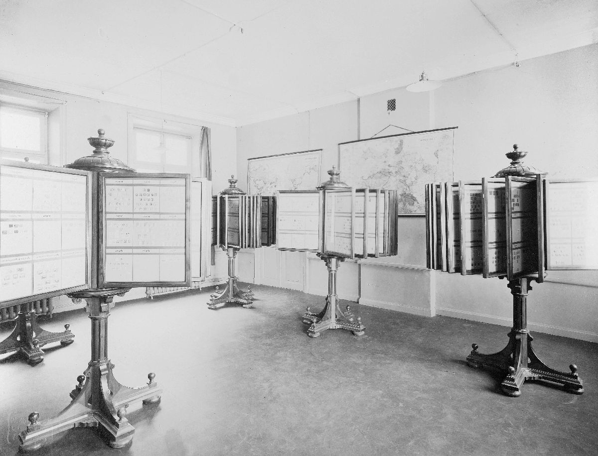 Svängmontrar med utländska frimärken, rum M på 2 trappor.