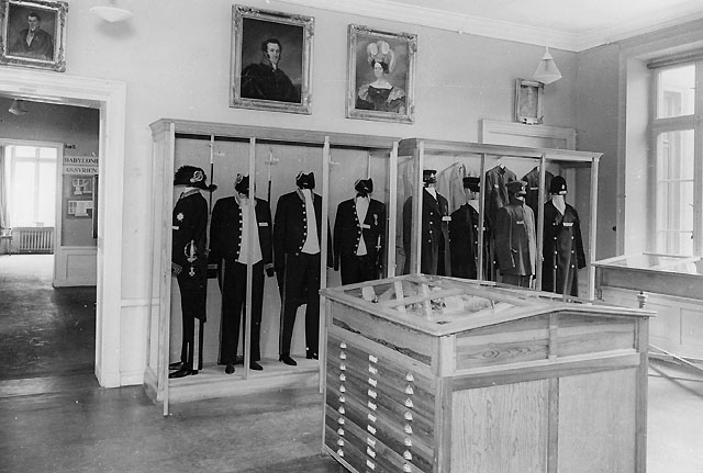 Postuniformer och porträtt i rum nr 14. (Rummet beläget mellan