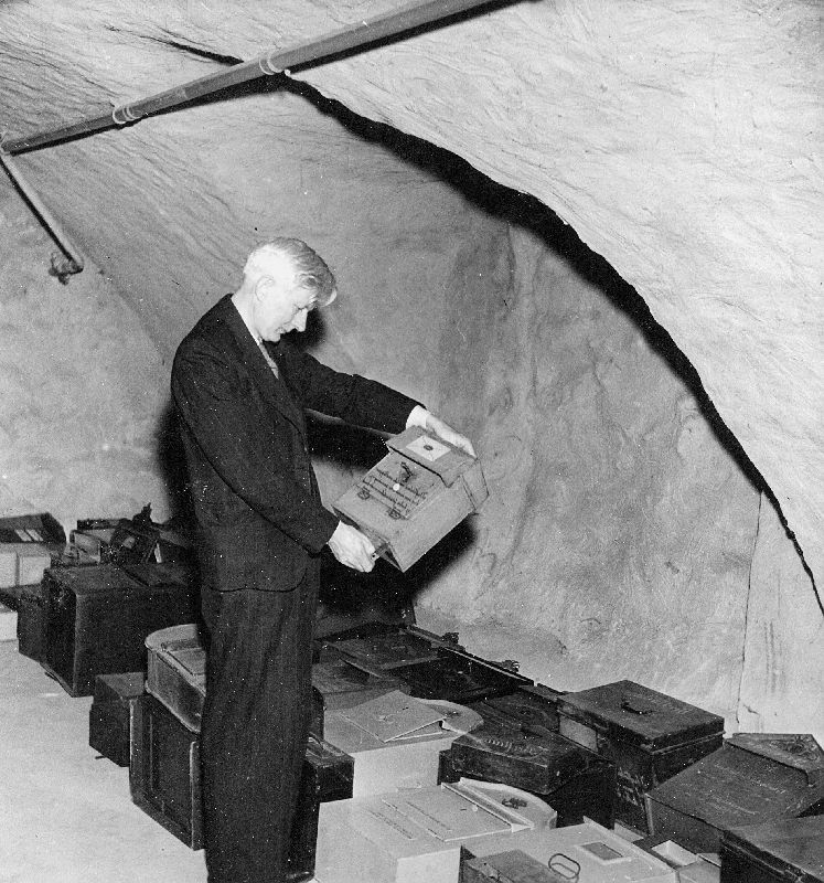 En del av museets samlingar av brevlådor, i källarvåningen.