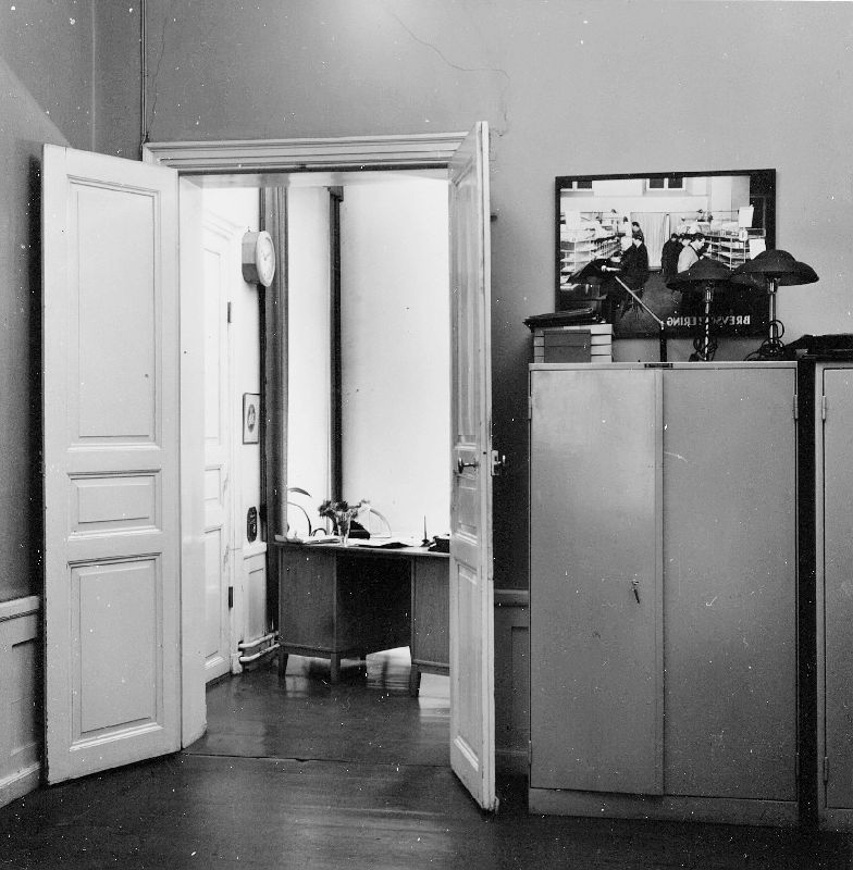 Överpostexpeditörens rum (genom-gångsrum)på 2 tr, sedd från "gröna