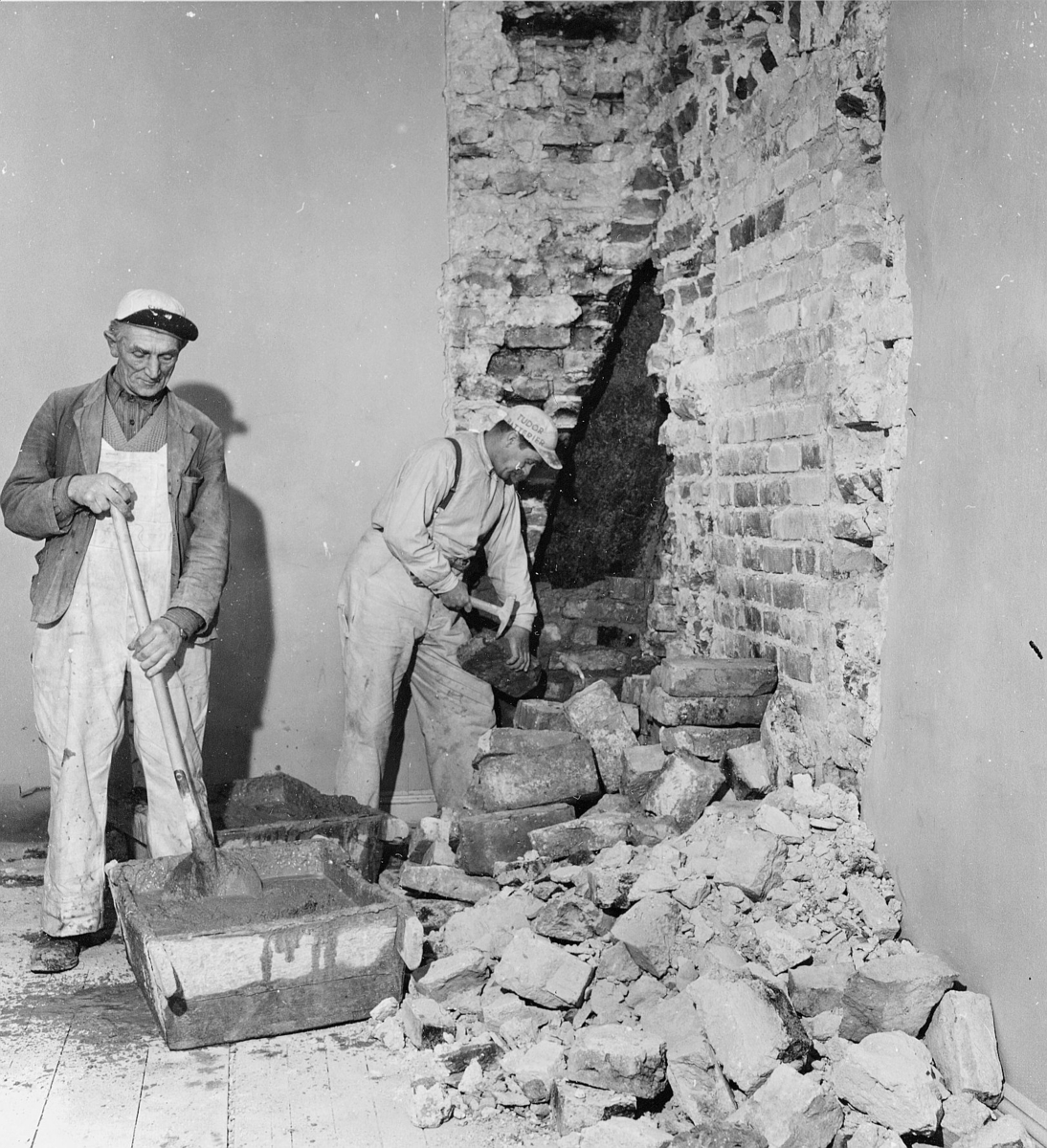 Titel: Vägg i f.d. Arseniusrummet, på 1 trappa, repareras. Tätning av rökgång, som befunnits vara otät.