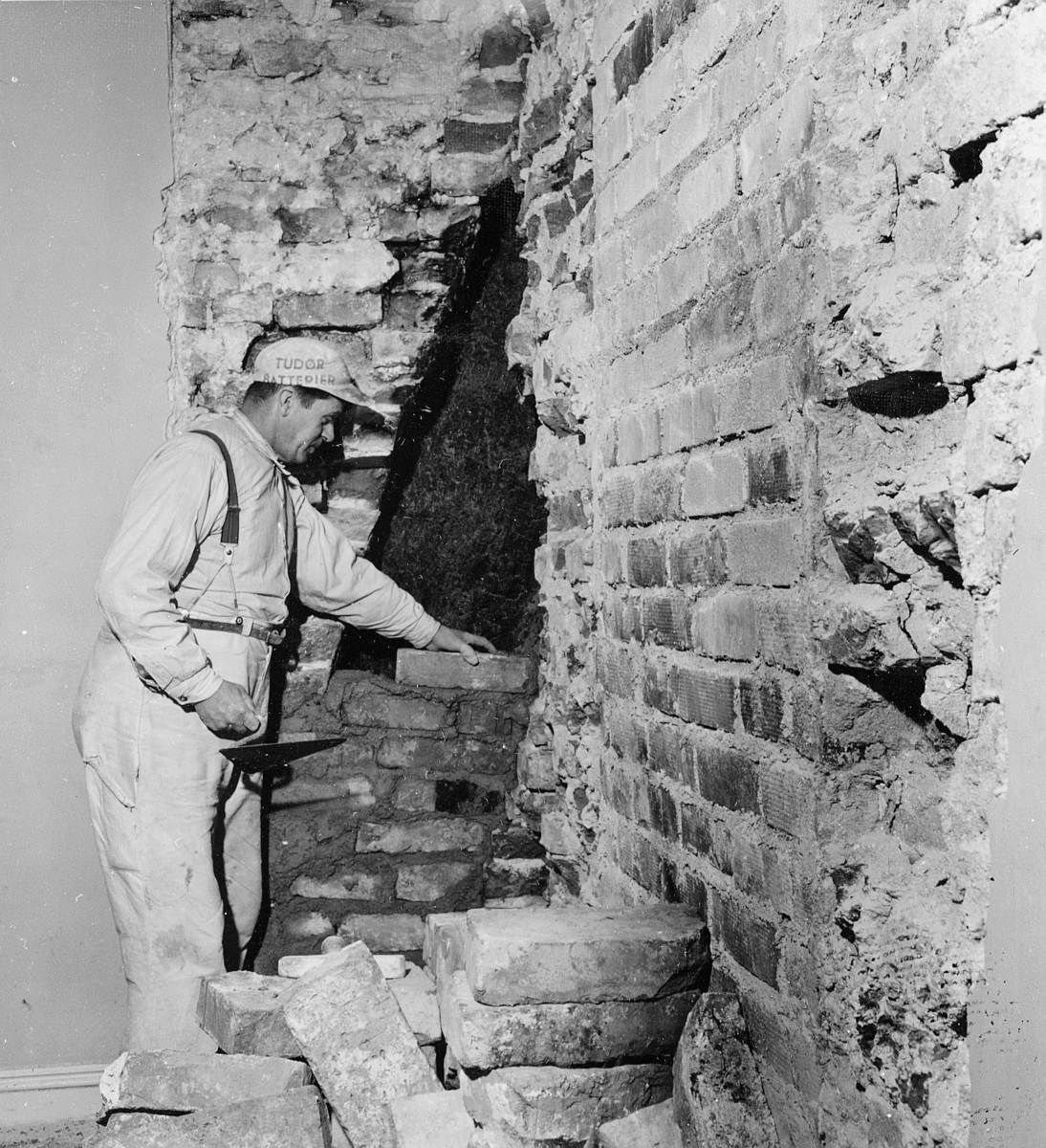 Vägg i f.d. Arseniusrummet, på 1 trappa, repareras. Tätning av