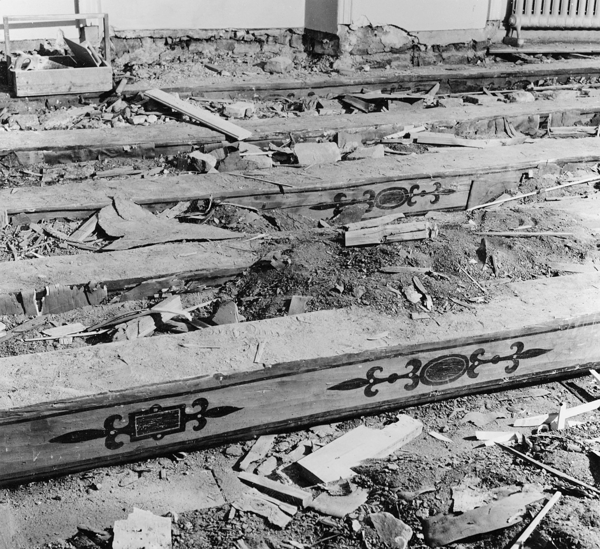 rivningsarbetet. Dessa låg gömda under hela golvet i rum 3 på 2:a
