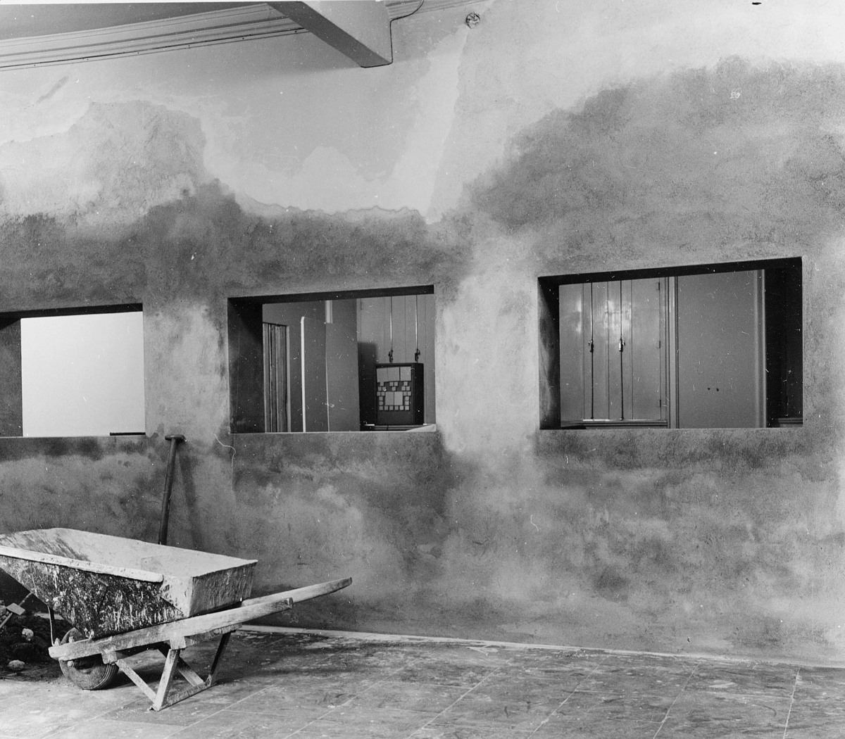Trapphallen på 1 trappa. Blivande fönster mot stora svenska