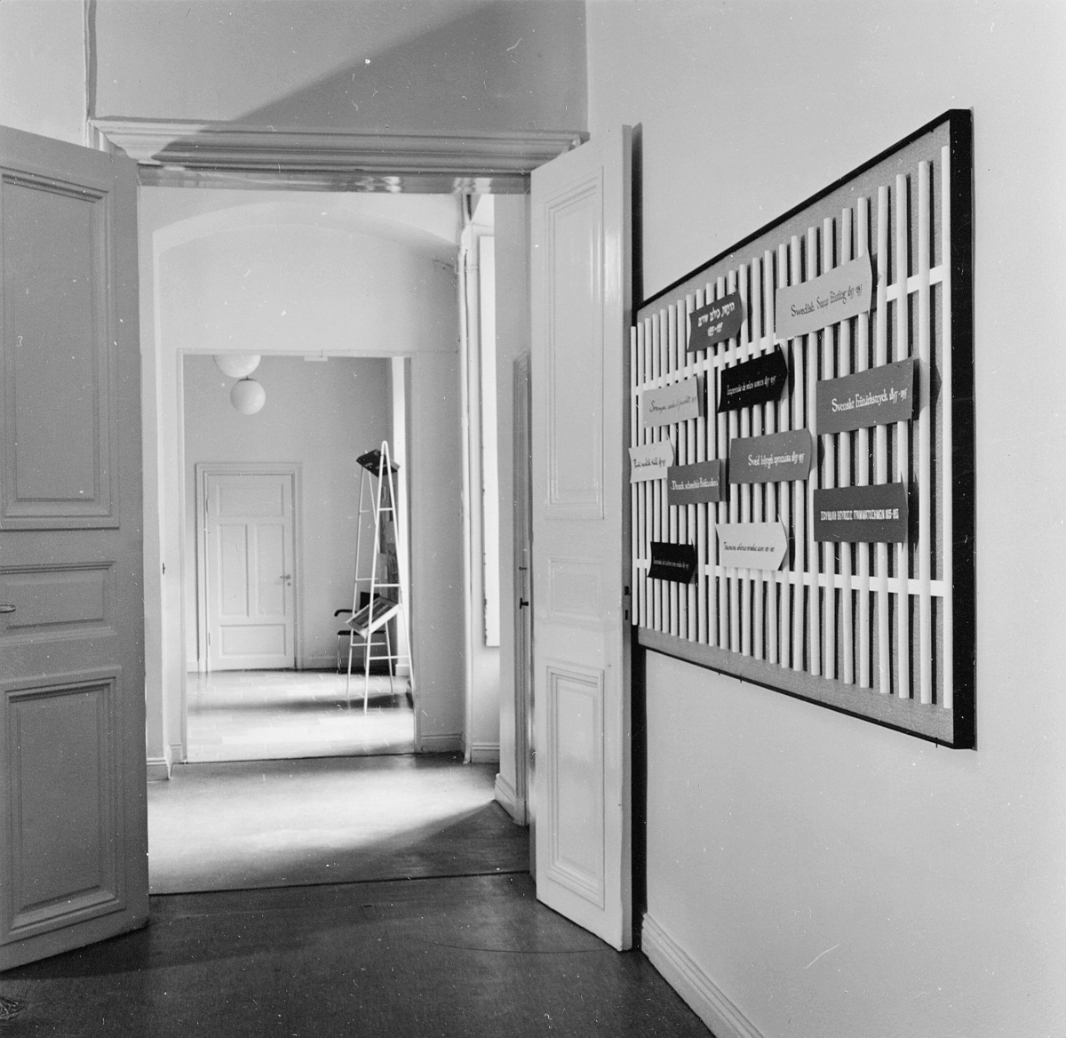 Dörrar mot entrérummet och trapp-hallen. I fonden dörr till föråds-