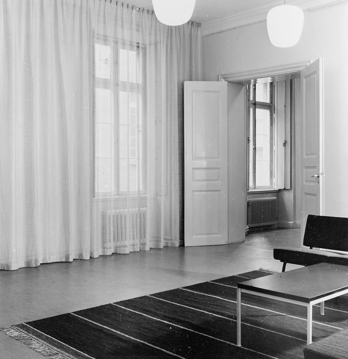 Fönster mot Yxsmedsgränd och dörr till frimärkssalen med de äldsta