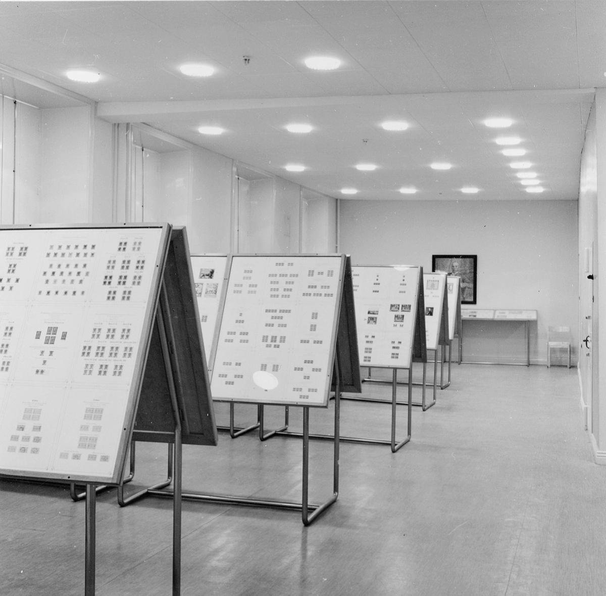 Stora svenska frimärkssalen. Till vänster fönster mot Lilla Nygatan.