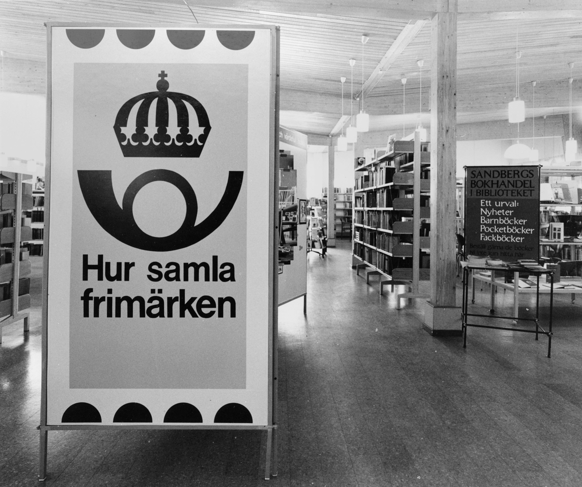 "Hur samla frimärken" Postmuseums vandringsutställning, Tyresö kommunbibliotek i Bollmora. Utställningen pågår under tiden 6 - 13 februari 1968.