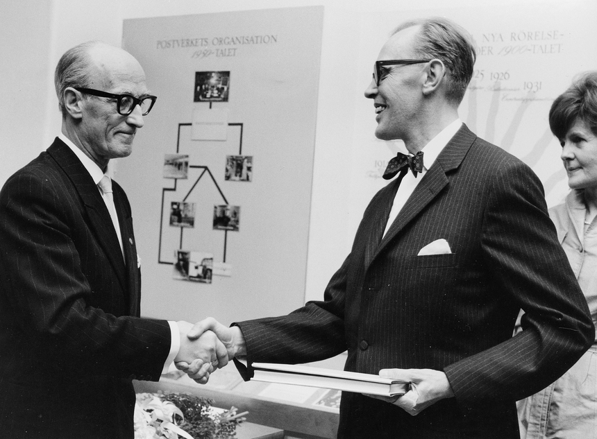 Museichefen Gilbert Svensson tackar för en bokgåva.