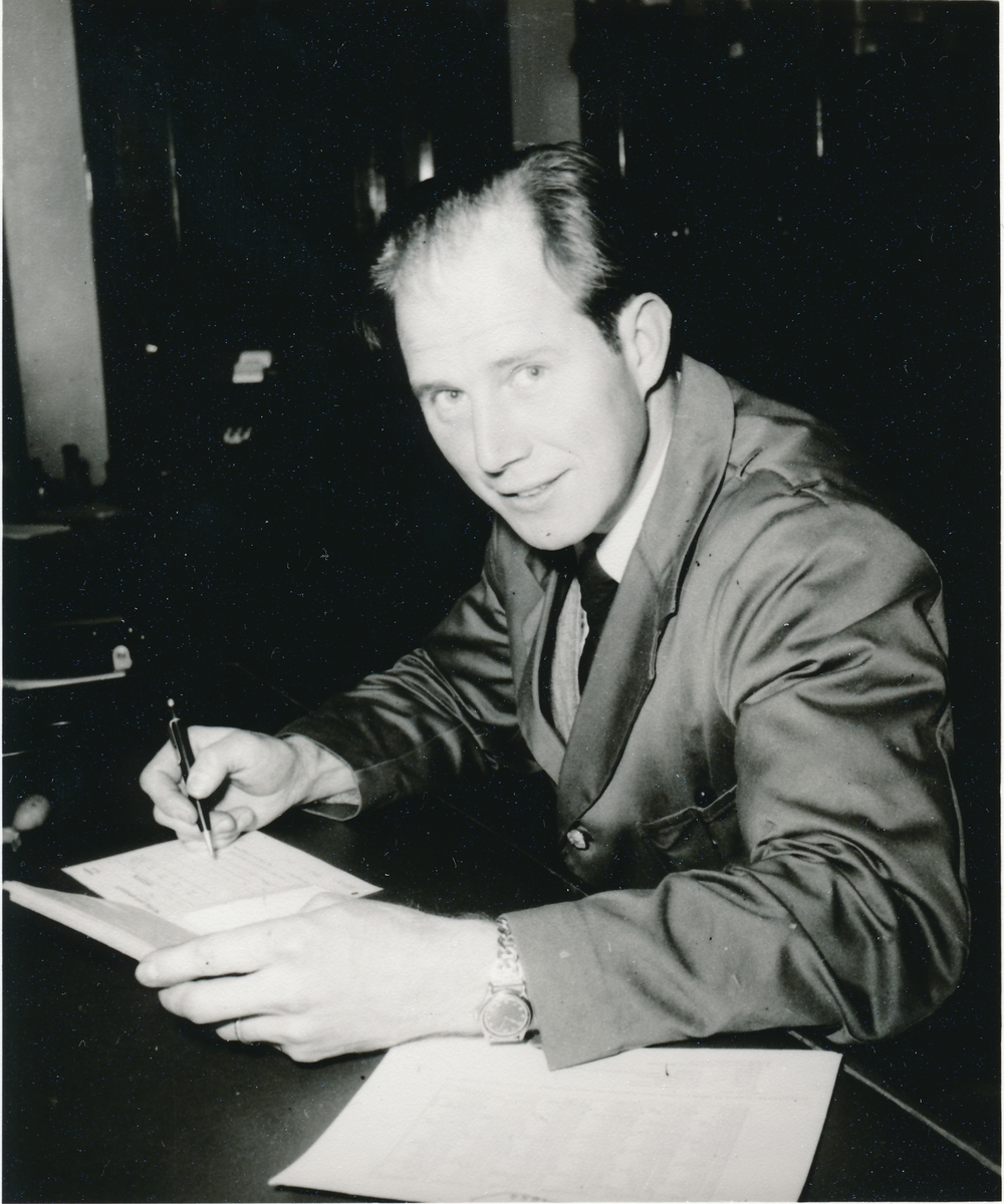 Postkontoret Sölvesborg 3. Fotografi med motiv av kontoristen Harry Kjerstinsson.