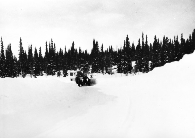 Titel: Linjen Östersund - Valsjöbyn Landsvägen mellan Norra Skärvången och Häggsjövik.