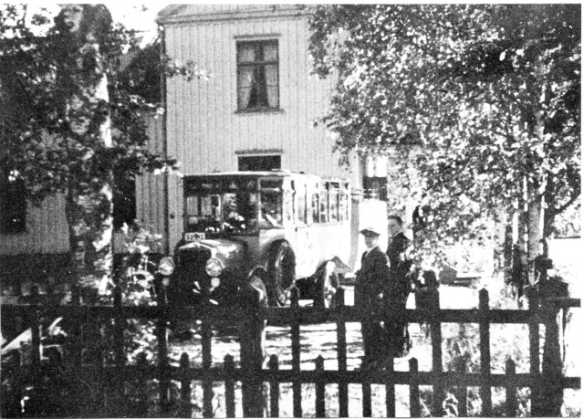 Titel: Linjerna Råda - Långflon. Vid posthuset i Råda.