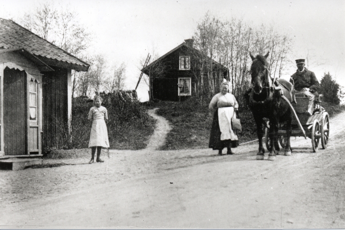 Postkörare Johan Brinck kommer till Lonnhyttan, 1915.