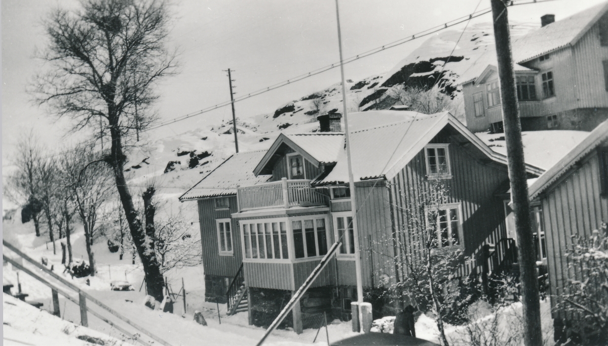 Postkontoret Kyrkesund, exteriör. Fotografiet föreställer byggnaden efter sista ombyggnaden av poststationen, ca 1940.