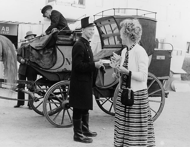Förste postiljonen Sivhed tar emot post för vidare befordran, medan