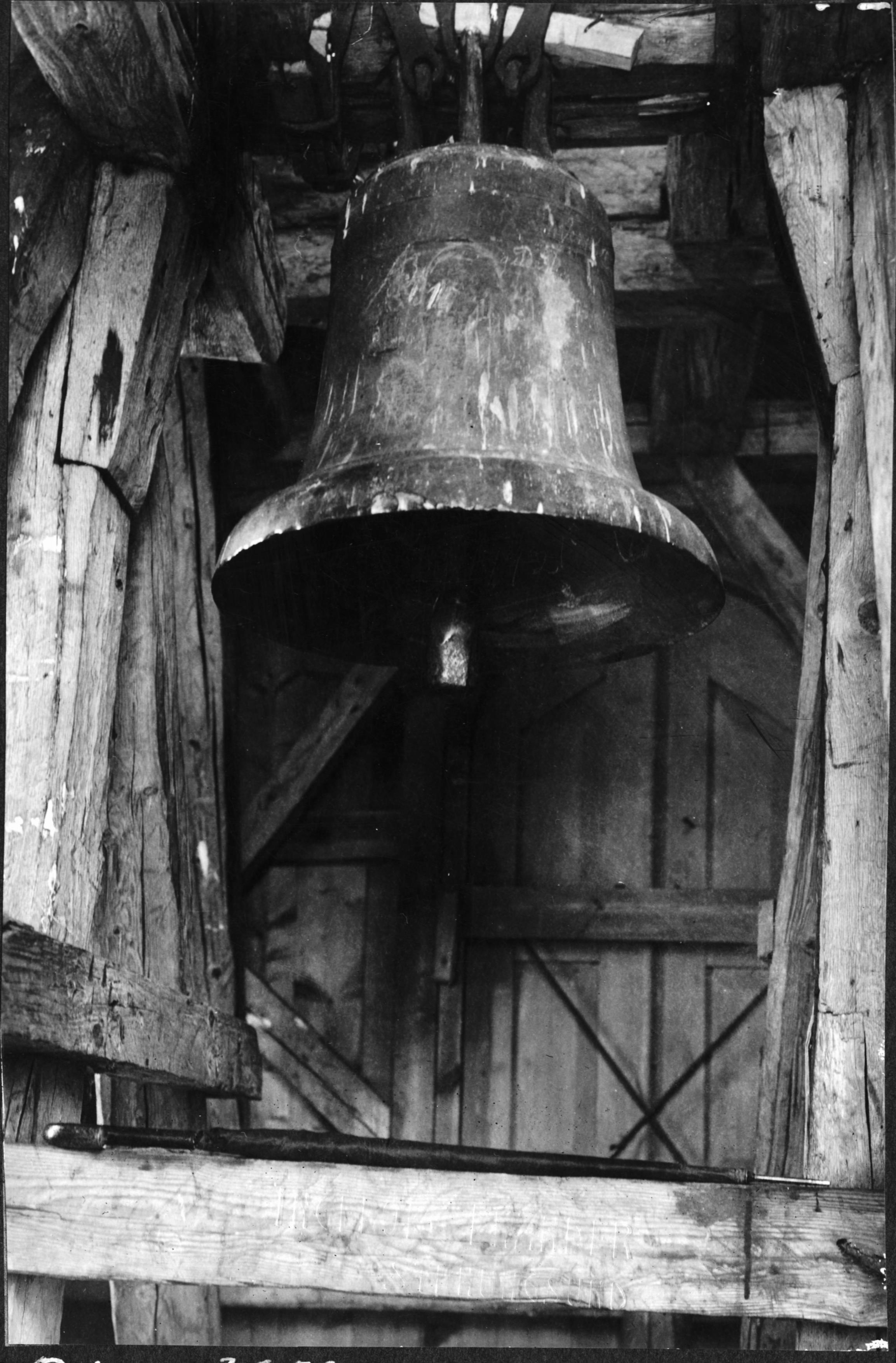 Klocka av malm enkel och utan inskrift. Från 1300-talet.