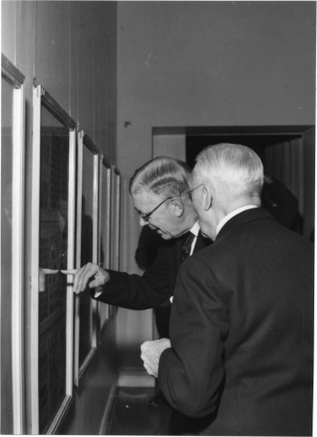 Kungen studerar donationer i jubileumsutställningens tredje rum.