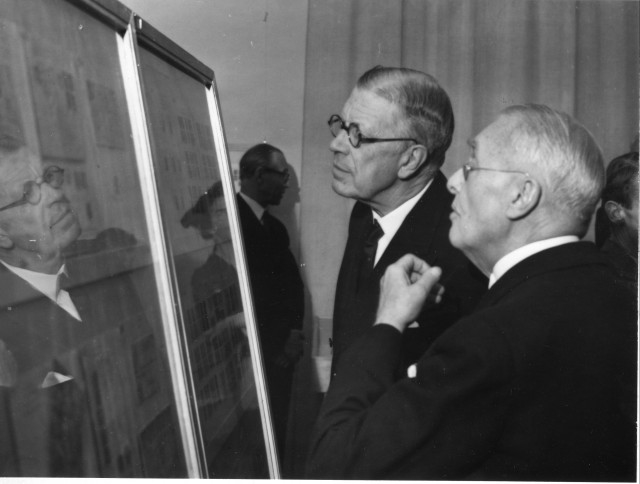 Kungen studerar donationer i jubileumsutställningens tredje rum.