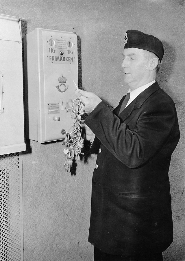 Varje frimärksautomat har sin nyckel. Nyckelknippan väger c:a 1 kg.