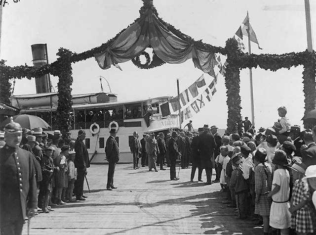 Utfärd till Strängnäs den 16 juli. Kajen i Strängnäs var prydd och