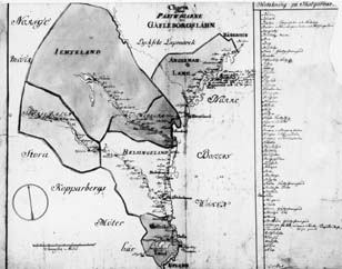 Titel: Charta öfwer påstwägarne uti Gäfleborgs lähn. Mitten av 1700-talet. Foto 1968.