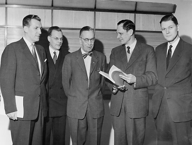 utredningens ordförande och t.v. av de båda sekreterarna